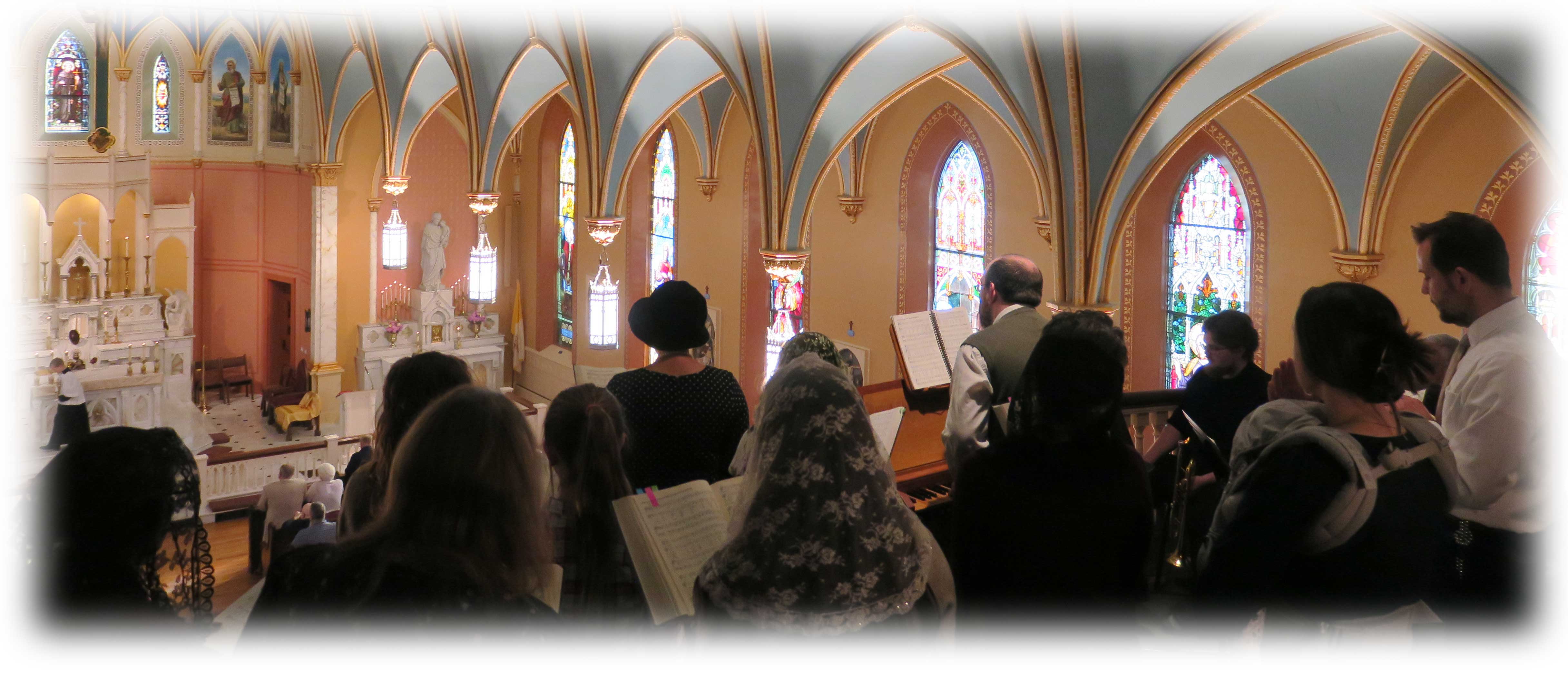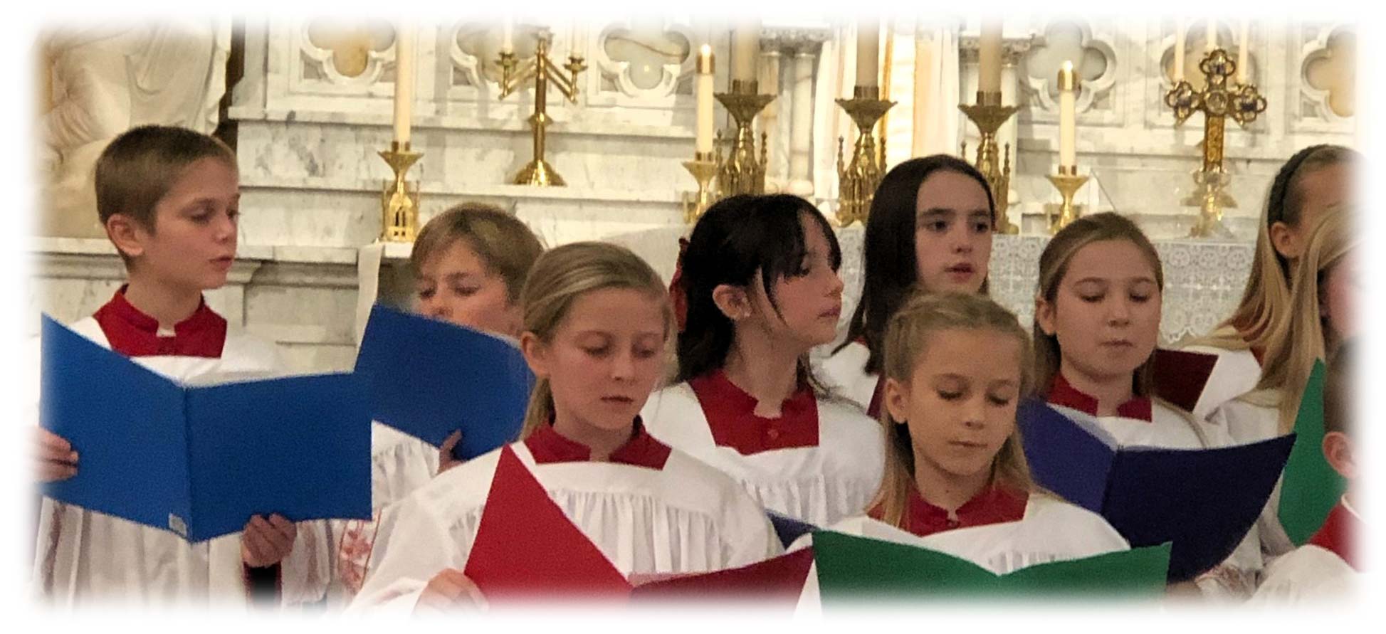 Youth Choirs: The St. Gregory Boy Choir and St. Cecilia Girl Choir are open to new members aged 7-13. Children will have the opportunity to learn the rudiments of music and to sing once a month at 8:30 Mass. Details are forthcoming. Contact the music director to express your interest. Pictured above: The children’s choir sings at the family Mass on Christmas Eve.